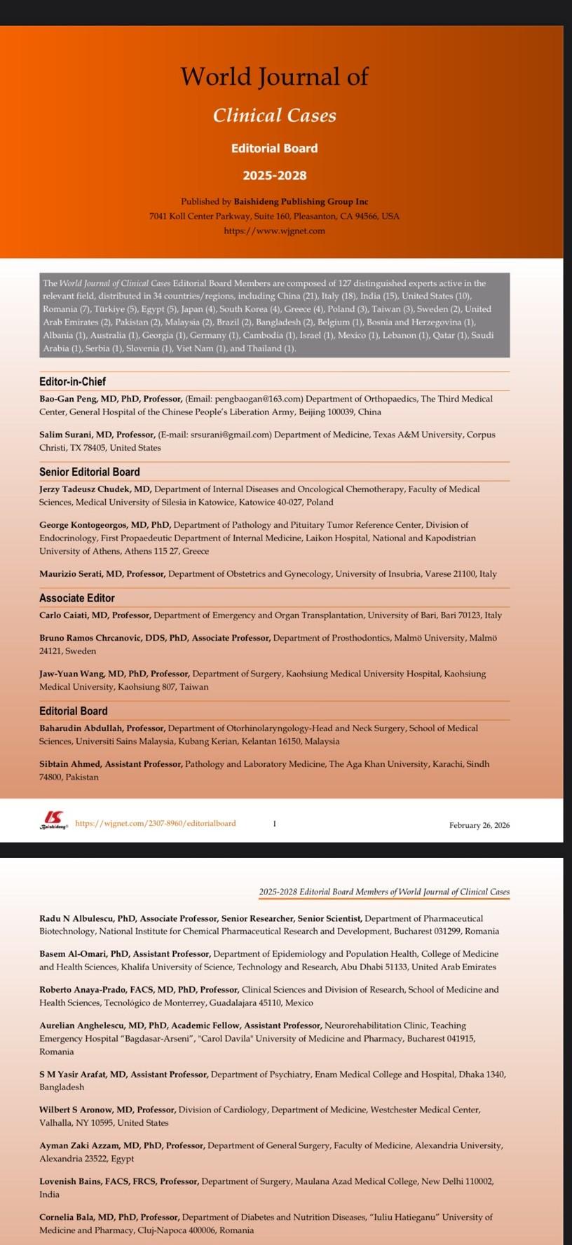 国際的な医学雑誌の編集者に選抜されました。