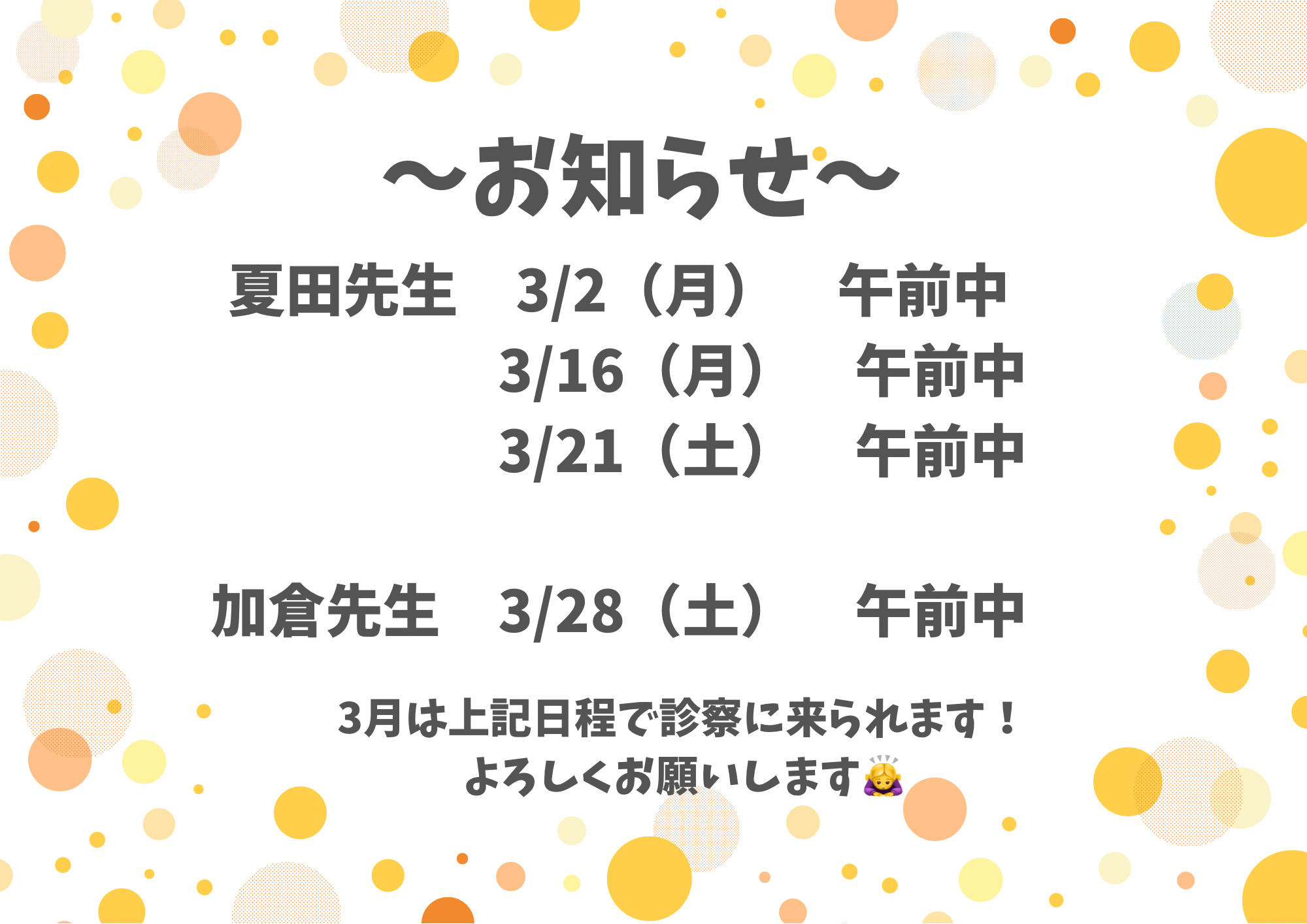 3月の診療についてお知らせです。